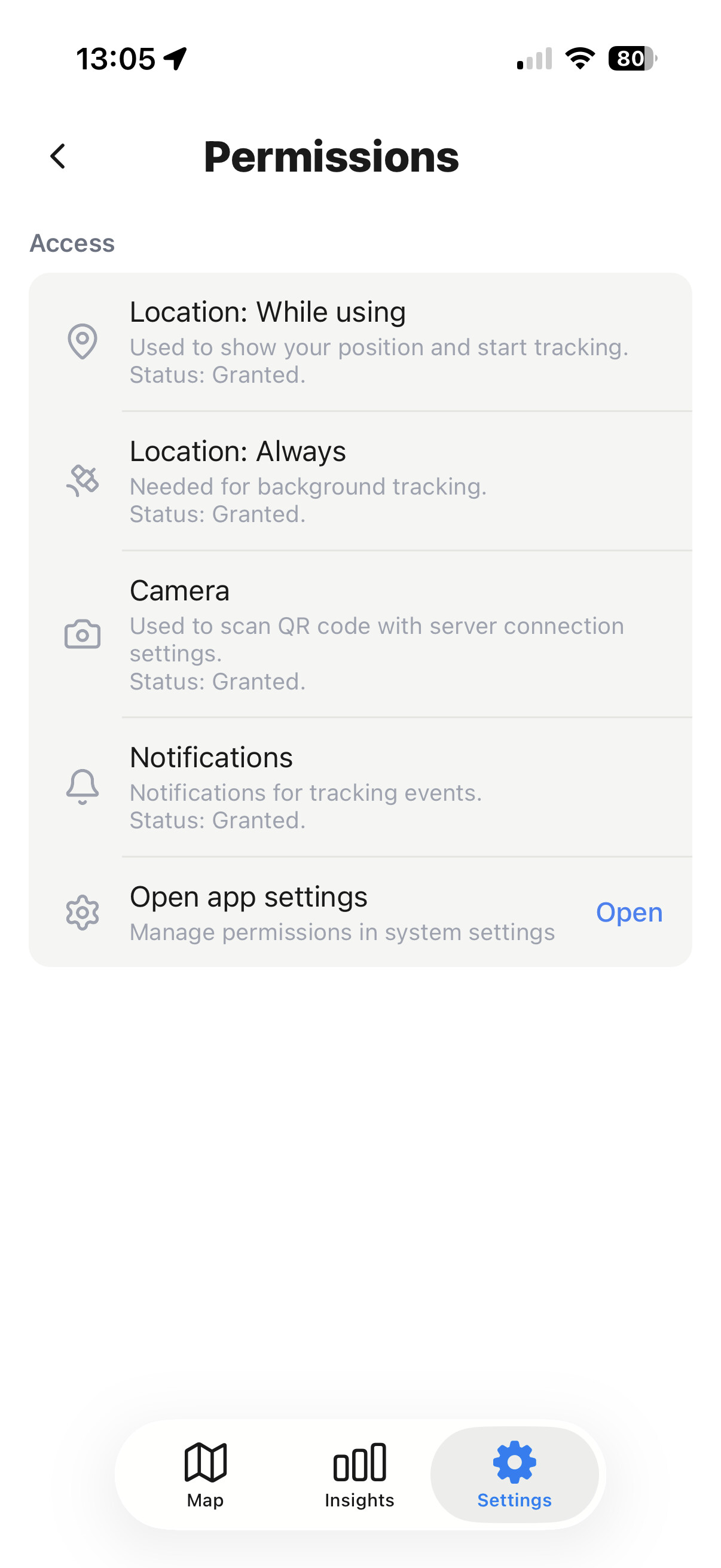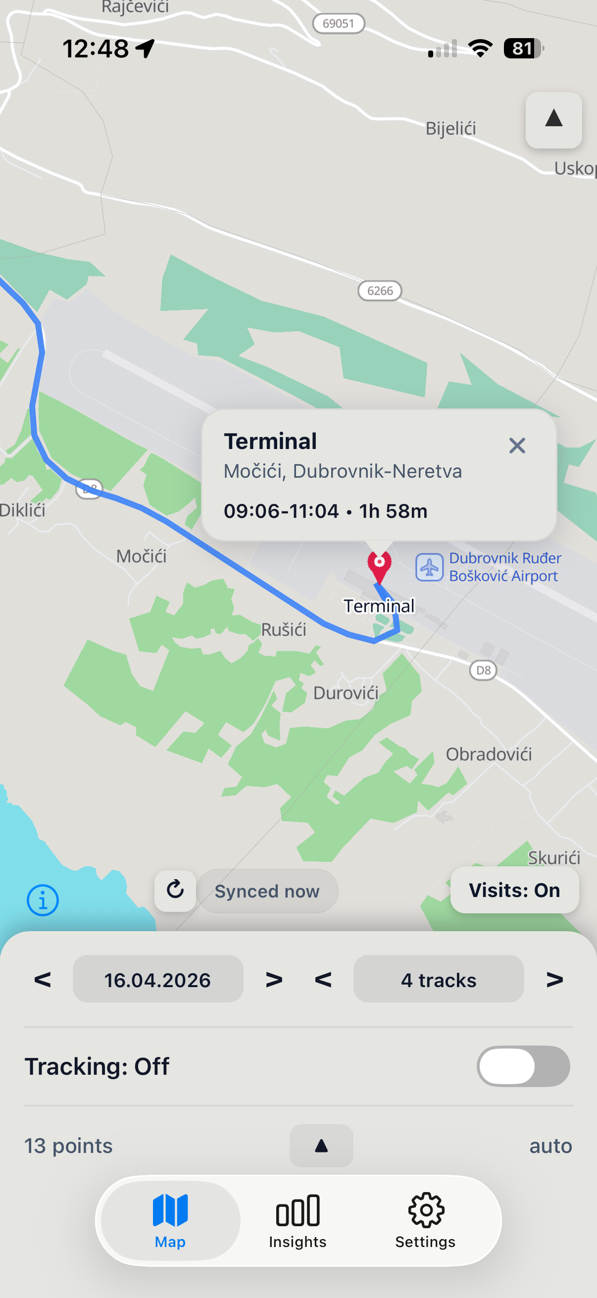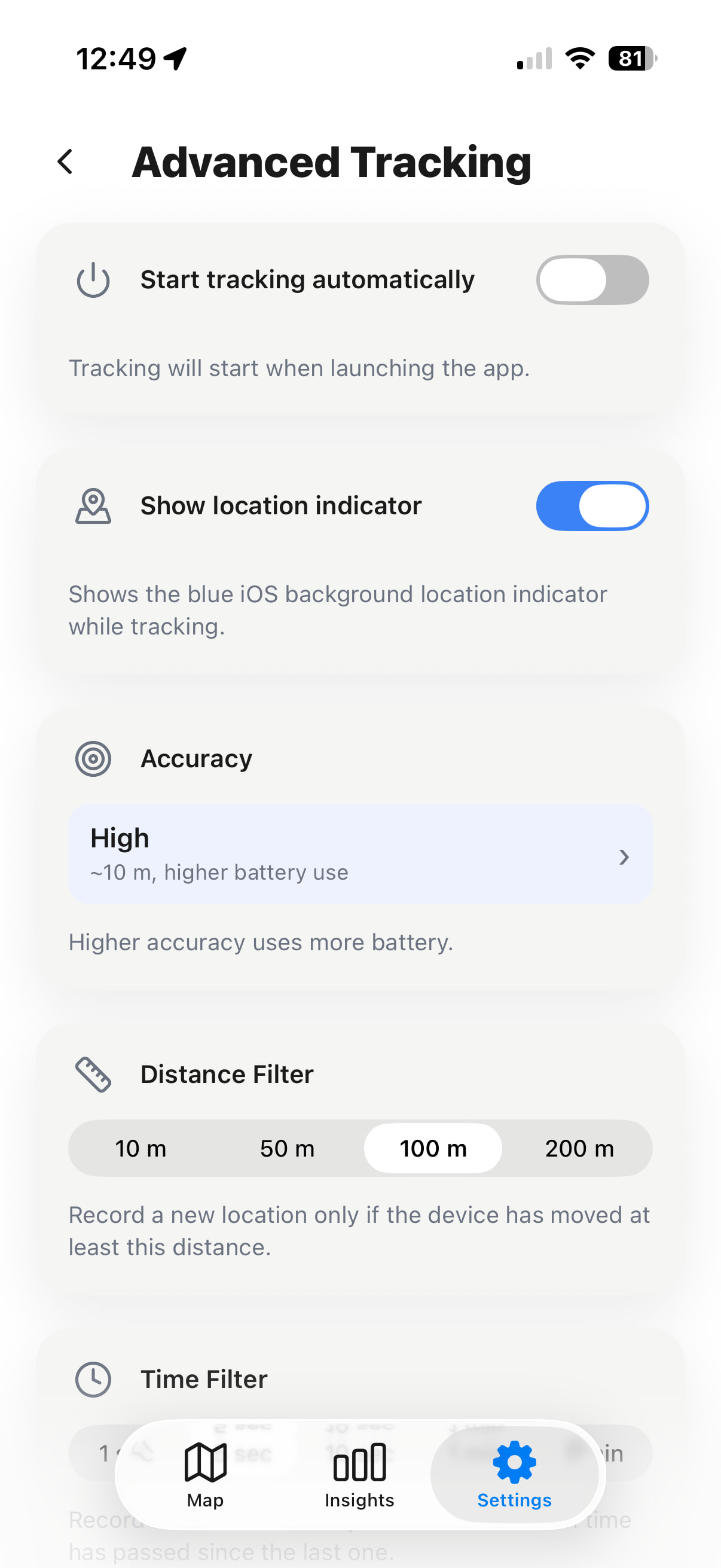 Warning: the app needs to migrate the database on the first launch after update. Please open it once to complete the migration. Also correct location tracking permissions (“always” authorization) need to be set before starting tracking. If tracking is started using Shortcuts, it may fail without opening the app first.