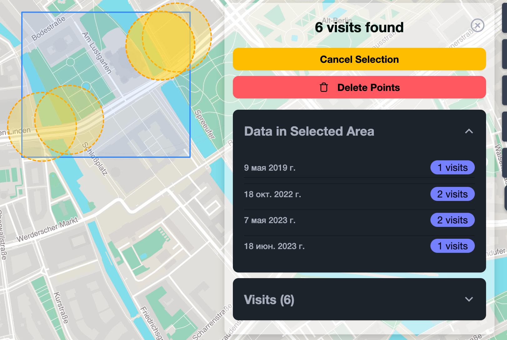 I would be extremely grateful if you could implement the area selection functionality in Map V2 as well. Being able to query all GPS points in a specific area is incredibly helpful I think.